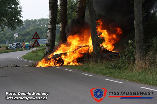 Oostkapelle - Auto uitgebrand na ongeval Oostkapelle .