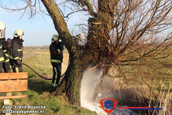 (10-03-2015) Middelburg - Onbekende(n) hebben dinsdagmiddag een boom in de brand gestoken. Rond 17:00 uur werd de brand ontdekt aan het einde van de Cleene Hoogeweg in Middelburg. Het blusvoertuig van de Stromenweg werd zonder spoed ter plaatse gestuurd. Om de brand goed te kunnen doven werd de holle boom met schuim geblust.